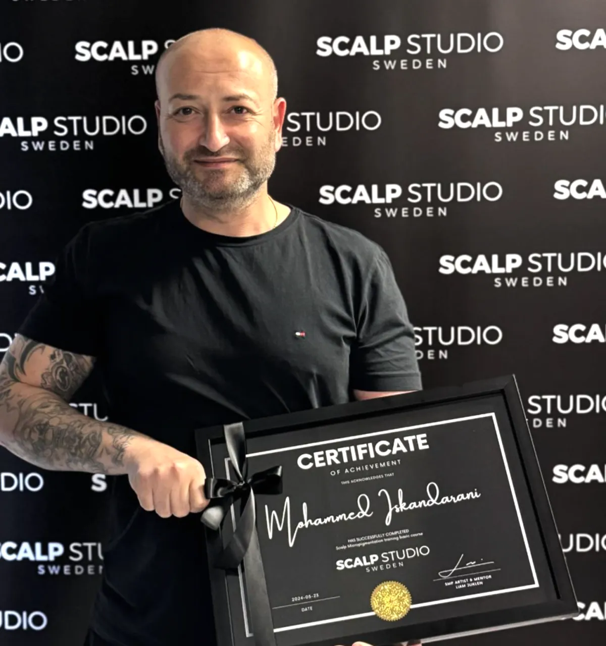 Jeg er uddannet hos en af Europas førende behandlere. Min mentor, Liam, ejer Scalp Studio Sweden som har brugt mange år på at uddanne sig hos de bedste i verden.